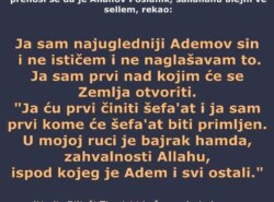 Es-selamu alejkum. Da li je ovaj hadis vjerodostojan kao što piše na slici? “Ja sam najugledniji Ademov sin i ne ističem i ne naglašavam to. Ja sam prvi nad ...