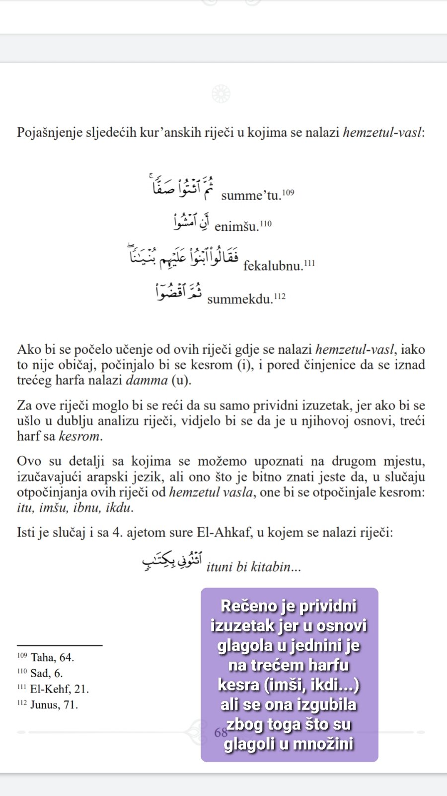 Inače se gleda treći harf (ako je na trećem harfu dhamma, na hemzetul wasl se dodaje dhamma, ako je kesra, dodaje se kesra) koji su izuzetci, odnosno na kojim glagolima se nađe na trećem harfu dhamma, ali se dodaje na hemzetul wasl kesra kad se kreće?