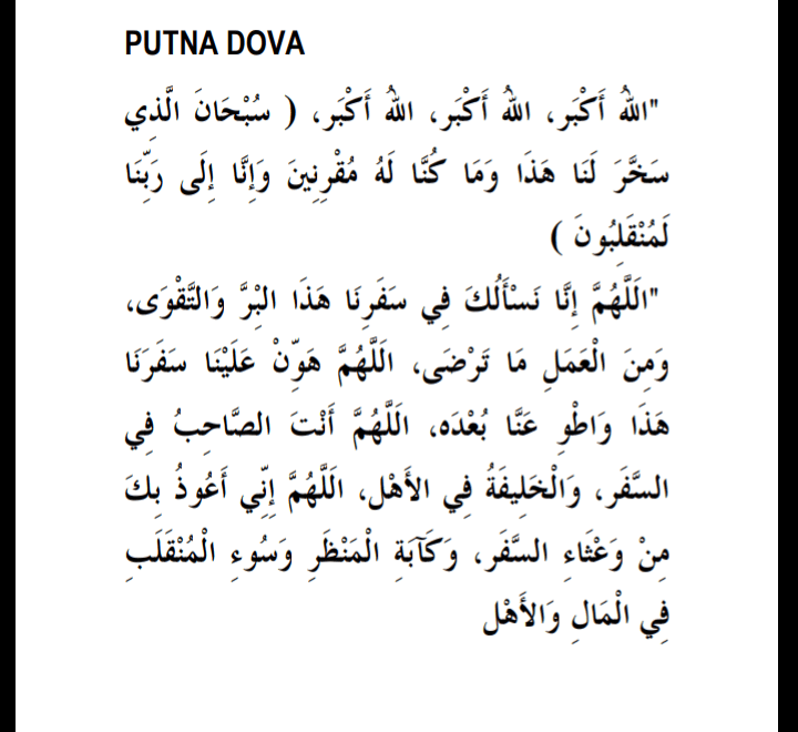 Na slici u prilogu je dova na arapskom jezku, ispod pročitajte transkripciju i prevod putne dove: