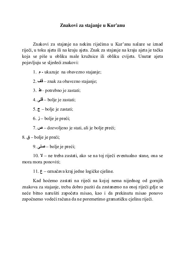U onom Mushafu gdje je iznad mim, to znači da je stajanje obavezno, a u drugom gdje piše kili, znači da je dozvoljeno stati, i da je bolje stati nego preći.